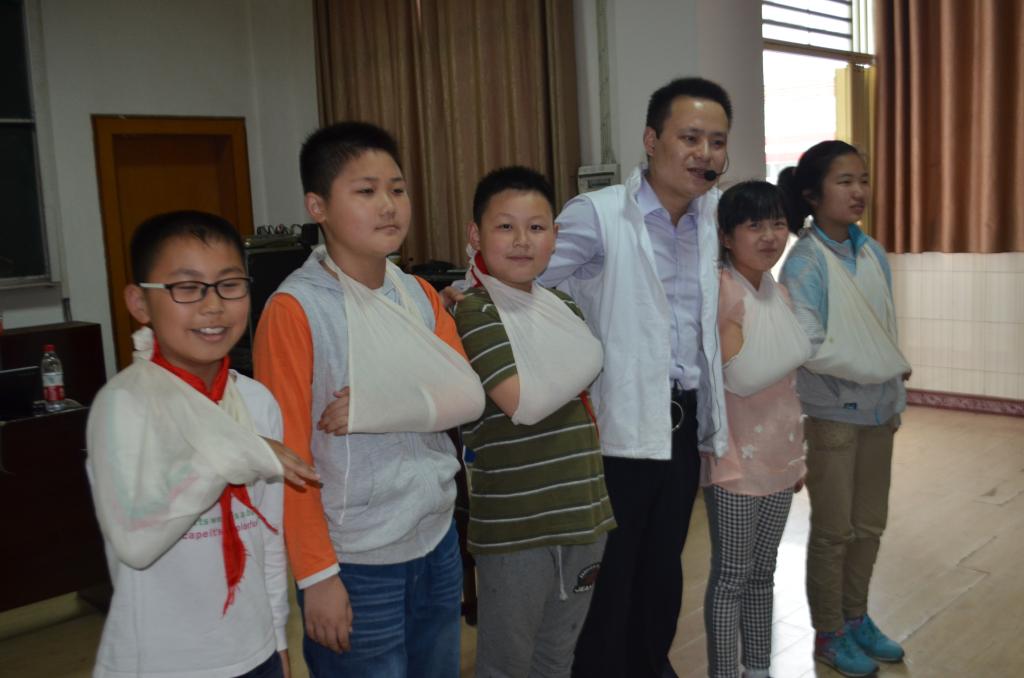 下午,市红十字会救护培训中心的讲师又赶到明熙小学,在该校的阶梯教室为师生们带来一场生动的急救知识培训讲座。讲师们运用动画片、喜剧短片等形式讲解了应急救护基本知识,常见突发性疾病如猝死、溺水、突发性晕厥等临床表现及基本救护理论知识。授课老师和在场的小学生积极互动,指导他们做人工呼吸和胸外心脏按压等急救常用技术,同学们争相举手上台操作,现场气氛活跃。