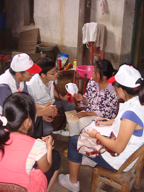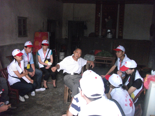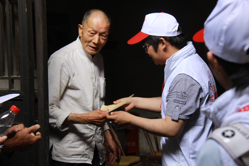 ??????? 几位村民分别领着志愿者们来到了革命前辈的家里,记者跟随志愿者们走访了革命前辈住宅,帮助行动不便的革命前辈和孤寡老人打扫卫生,并与老人亲切交谈,询问了解他们的身体状况和生活境况等。前辈们向志愿者讲述了当年的革命故事,教育志愿者们要讲诚信,懂得感恩。最后,志愿者们代表武汉市红十字会为这10户家庭分别送去了慰问金,并与革命后代互相留下了联系方式,以便进行长期的结对帮扶。记者采访了来自江汉大学文理学院的红十字志愿者高洋,他说:“革命先辈们是无私的,现今他们自己乃至后代的生活条件依然很艰苦,清贫,我们应时时怀着感恩的心,不能忘记他们的付出!他们的英勇献身精神是对我们的警醒,后代生活清贫而心态依然乐观,我们能做的就是给予他们在精神上抚慰,生活上帮助。”