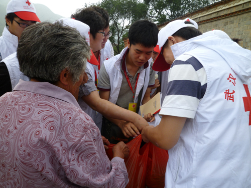 ??????? 体革命前辈之气概,扬革命前辈无私奉献的优良传统。6月25日,在党的九十华诞来临之际,武汉市红十字会组织来自不同学校25名红十字志愿者前往革命老区黄陂蔡店镇,慰问曾经为新中国解放事业做出过重要贡献的革命先辈和老区人民,为该镇的10名生活困难的老党员,老战士,革命后代分别送去了慰问金,并参观了新四军第五师旧址。