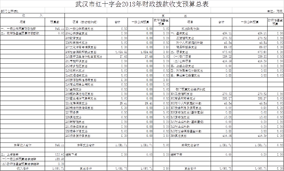 表1. 武汉市红十字会2018年财政拨款收支预算总表